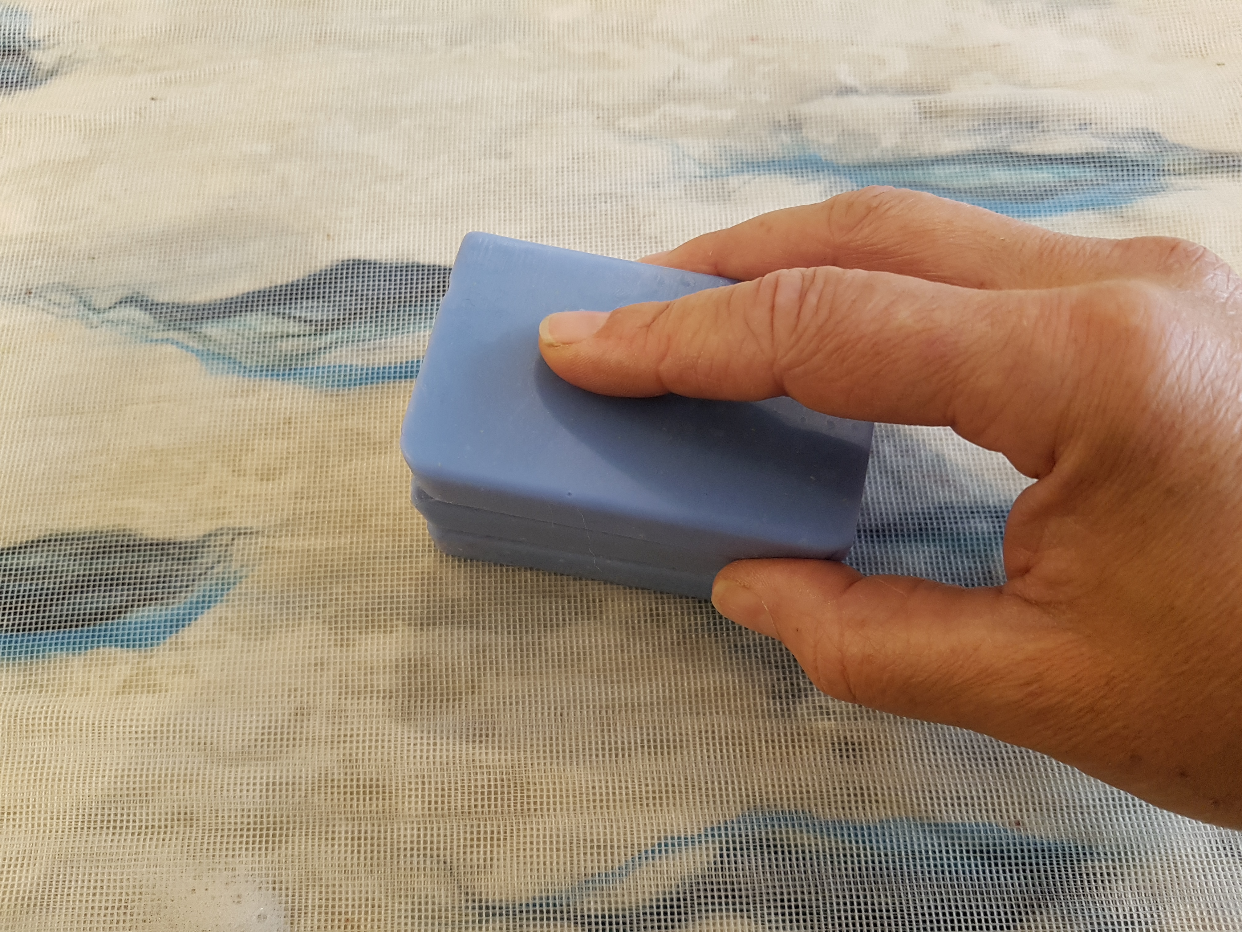 wird zum Anreiben mit Seifenwasser auf die Wolle aufgelegt, damit sich die Fasern nicht verschieben oder an den Händen kleben bleiben,