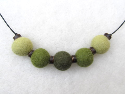 Filzperlenkette olivgrün dreifarbig